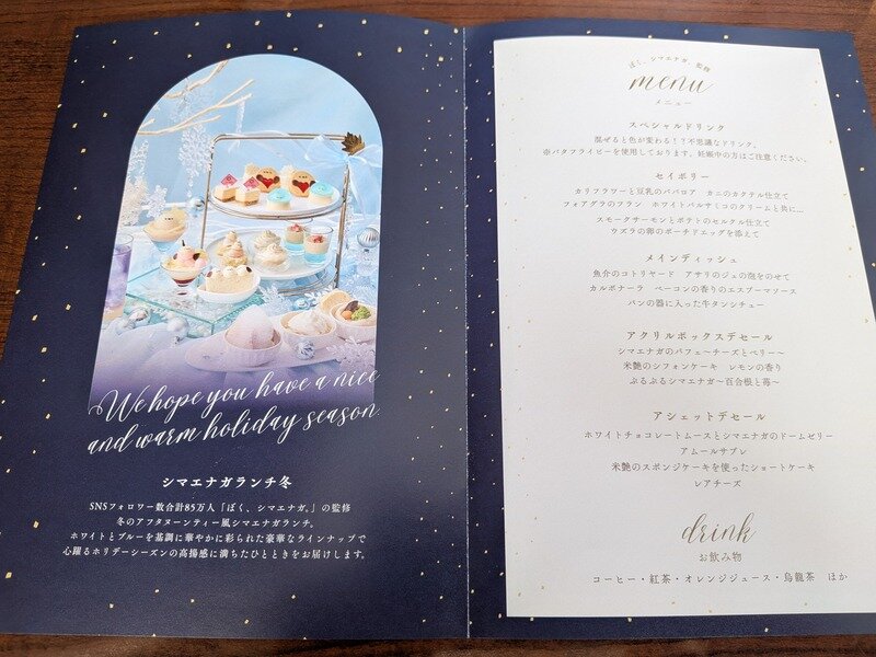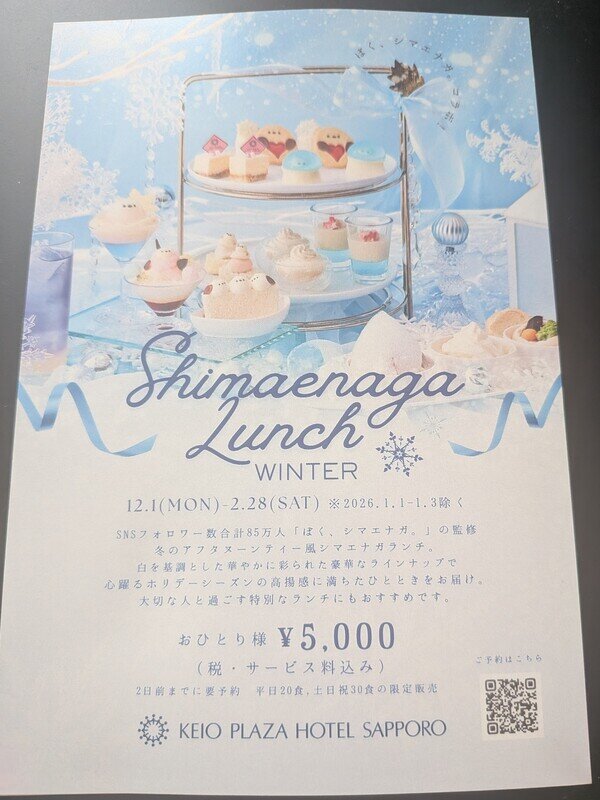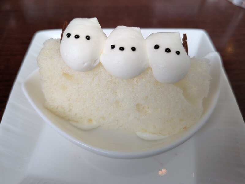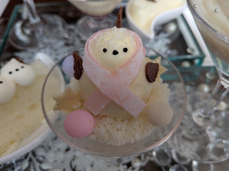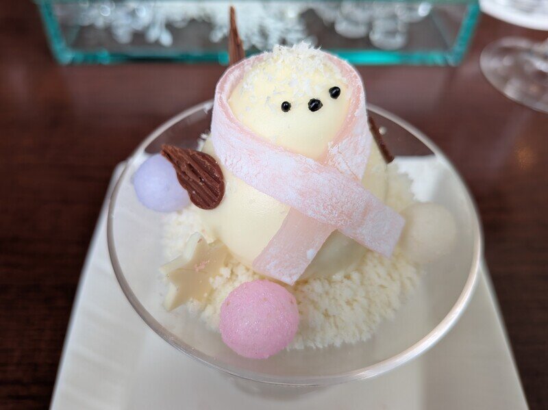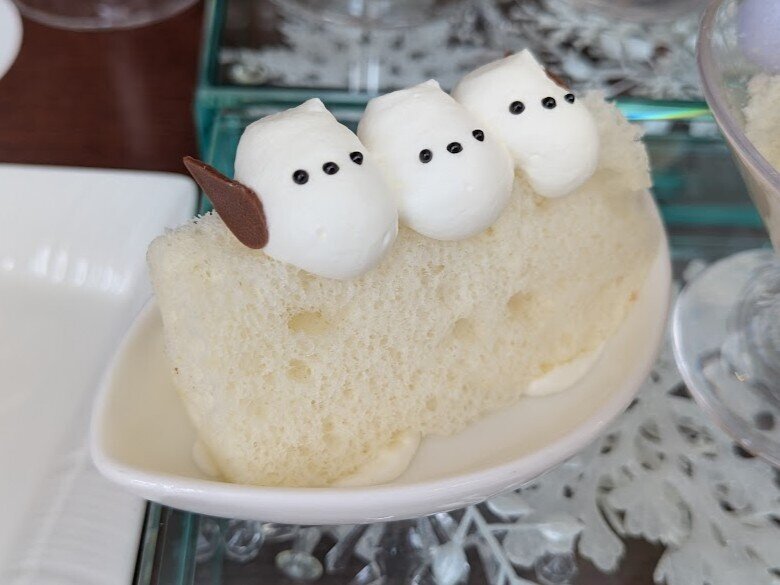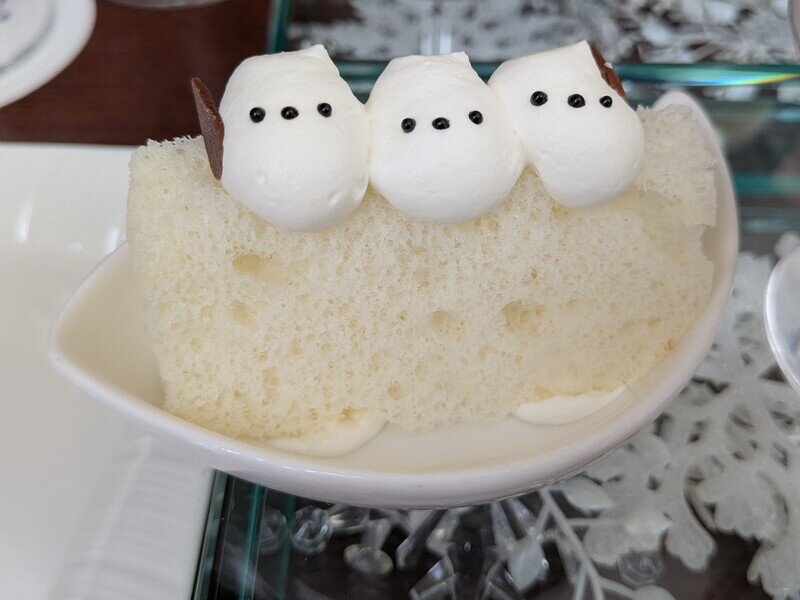 ホテル一階レストラン「グラスシーズンズ」にて、季節毎に期間限定で提供されるシマエナガランチセット。食べるのが惜しいくらい可愛いし、上品な美味しさ、程よい食事量。ケーキの持ち帰りも利用。