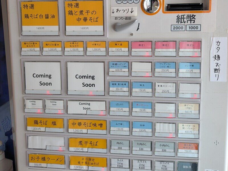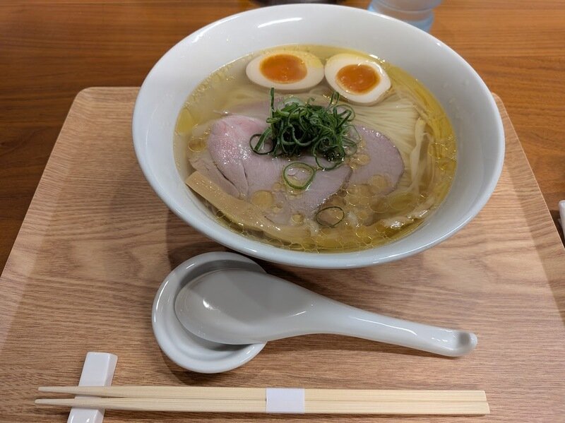 人気店「らーめん竹馬」が移転、「らーめん飛鶏魚(とさか)」に店名変更してオープン。看板商品は「鶏そば白醤油」と「中華そば」。中華そばは竹馬で二度食べていたので、「鶏そば白醤油 味玉つき」に。スープがすっきり優しい口当たりで、飲み干してしまいそうなくらい美味しい。